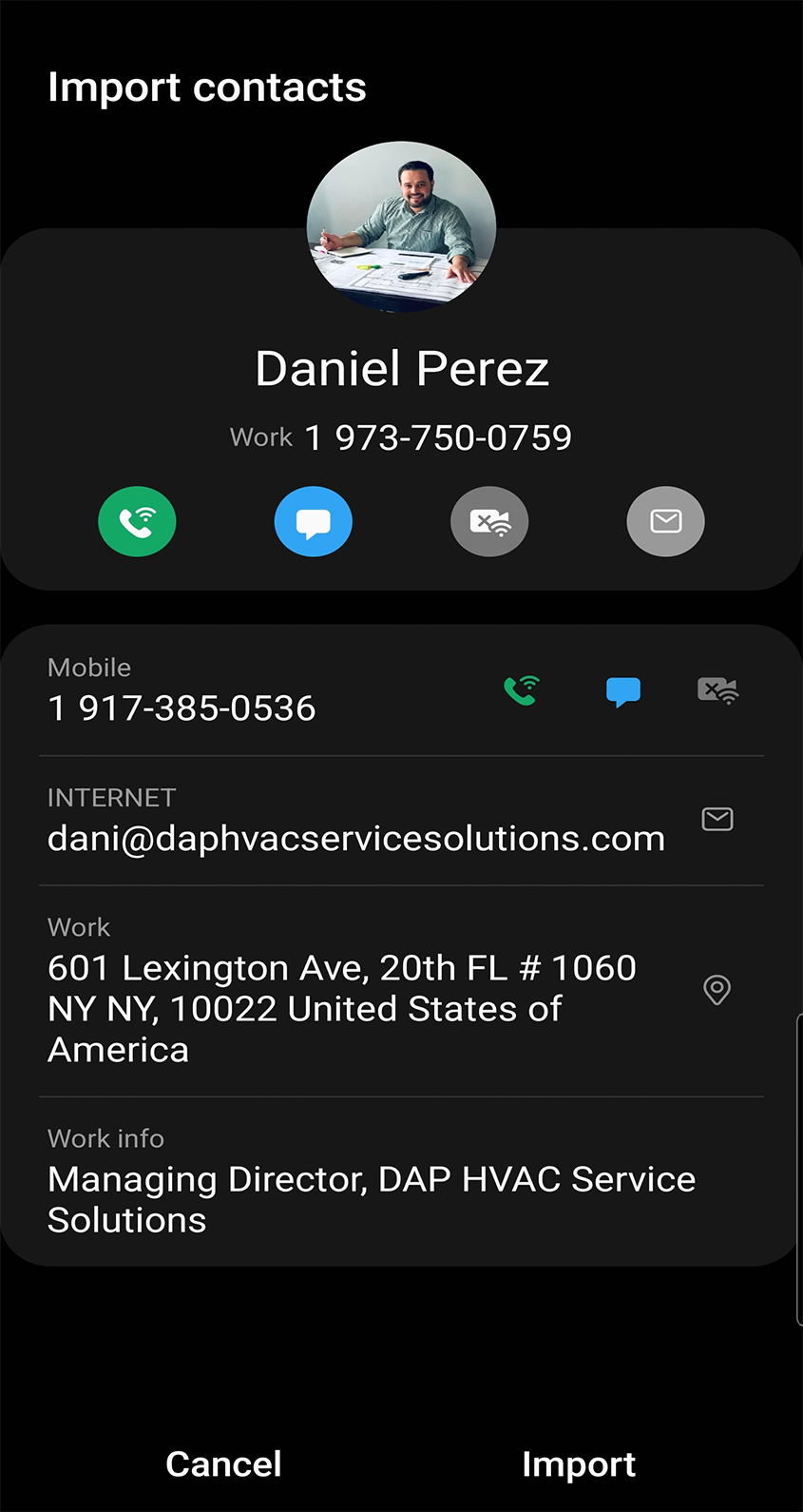 Call directly without typing any numbers01Text Messages and WhatsApp02Forget misspellings and email with confidence03Connect your clients to your Website04Open Google Maps to lead clients directly to your business address05All your contact details can be downloaded and saved using a CSV.06See How it Works!Share on Social MediaShare with NFC CardCopy and PasteScan QR Code010203040506